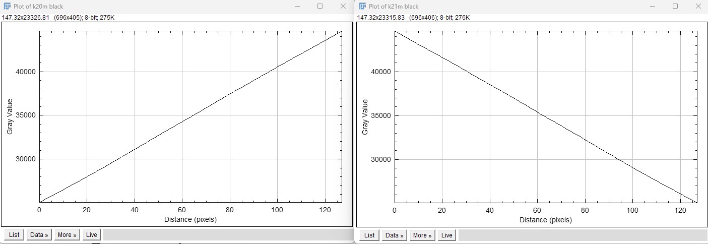 Co ciekawe, dla komory z PTFE mapa oświetlenia przyjmuje kształt zbliżony do odwrotności winietowania, co może paradoksalnie korygować ten efekt wbudowany w aparaty. Z kolei w przypadku komory z czarnym materiałem, oświetlenie przypomina podwójną sinusoidę, która nie daje już tak korzystnego efektu.