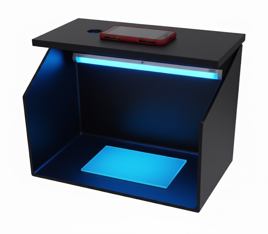 Dążenie do eliminacji błędów tła doprowadziło do skupienia się na metodach fizycznych. Zoptymalizowano konstrukcję komory do fotografii, korzystając z zaawansowanych symulacji w oprogramowaniu Blender, które z dużą dokładnością przewidywały, jak światło UVC będzie rozprzestrzeniać się w jej wnętrzu i oddziaływać z powierzchniami komory.